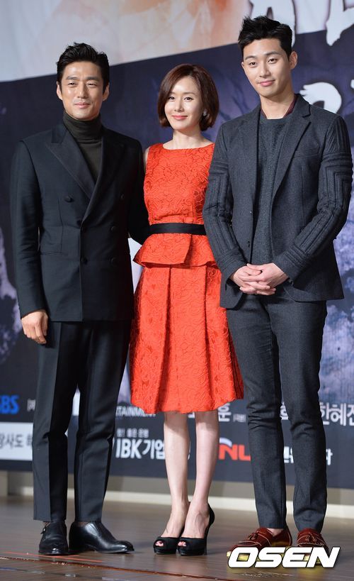 배우 지진희, 김지수, 박서준이 포토타임을 갖고 있다.