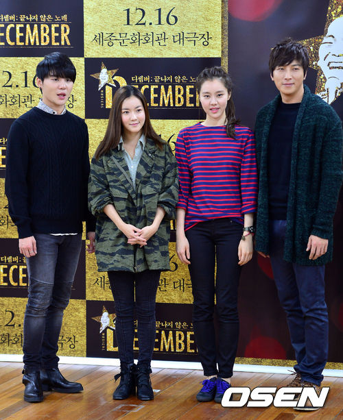 29일 오후 서울 세종로 세종문화회관 예술동 종합연습실에서 열린 뮤지컬 '디셈버: 끝나지 않는 노래'(이하 '디셈버') 연습현장공개에서 김준수와 오소연, 김예원, 박건형이 포즈를 취하고 있다.