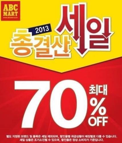 ABC마트는 29일부터 내년 1월1일까지 인기품목들을 최대 70%까지 할인해서 판매하기로 했다.
