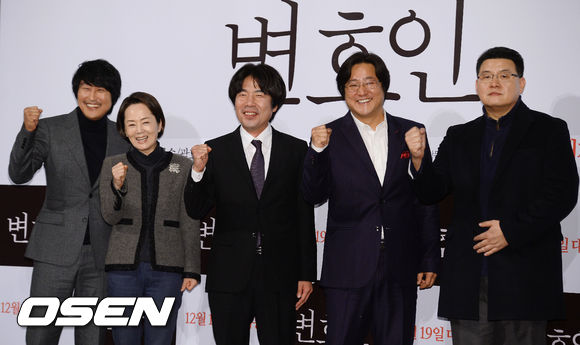 29일 오후 서울 왕십리 CGV에서 진행된 영화 '변호인'(양우석 감독) 언론배급시사회에서 송강호 김영애 오달수 곽도원 양우석 감독이 포토타임을 갖고 있다.