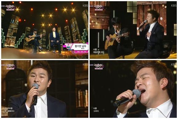 허각은 29일 오후 방송된 KBS 2TV ‘뮤직뱅크’에서 ‘향기만 남아’를 열창하며 폭발적인 가창력을 자랑했다. 그가 자랑하는 특유의 애절한 보이스는 구슬픈 멜로디와 어우러지면서 감동을 더했다.