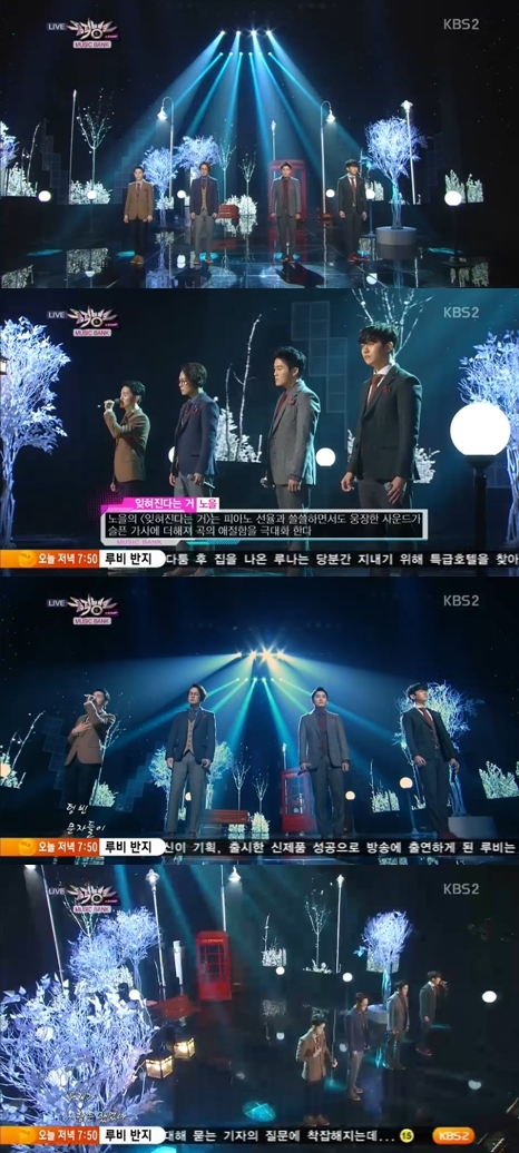 네 사람이 나란히 맞춰 입은 슈트 패션은 남성적이면서도 댄디한 이미지를 만들었으며, 서정적인 곡의 분위기에 맞춰 꾸며진 무대는 추운 겨울의 쓸쓸함을 보여줬다.