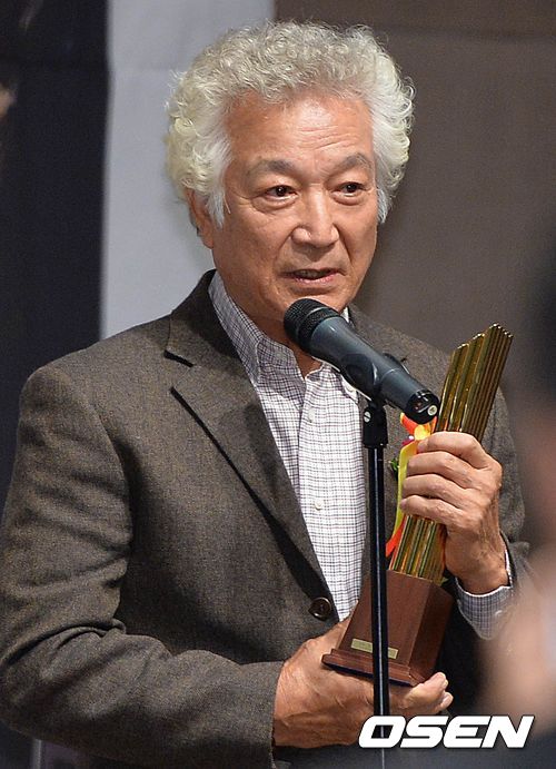 배우 신성일이 공로상을 수상한 뒤 소감을 전하고 있다.