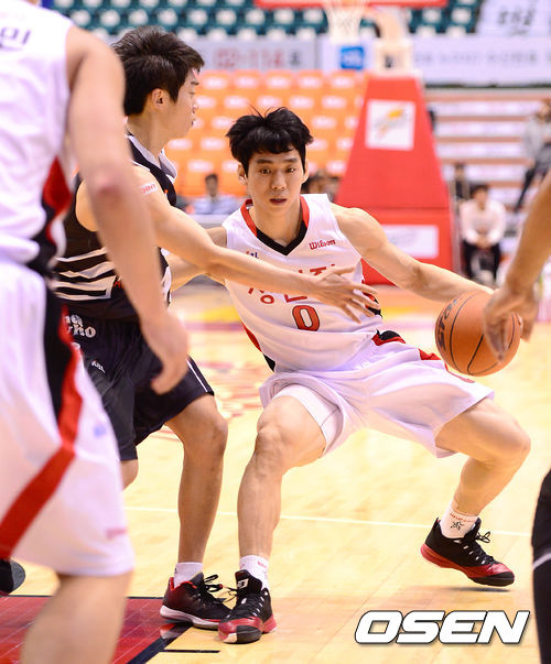 3쿼터 KGC 김윤태가 드리블 돌파를 시도하고 있다.