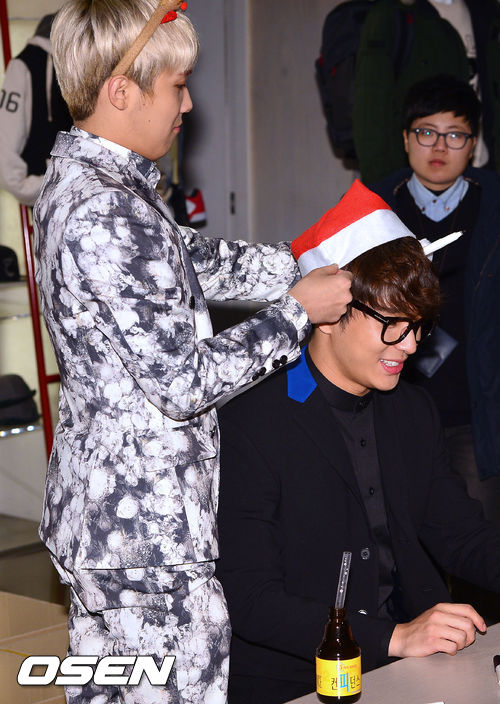 29일 오후 서울 현대백화점 목동점 별관 유라운지에서 열린 FT아일랜드 팬사인회에서 FT아일랜드 홍기와 종훈이 장난을 치고 있다.