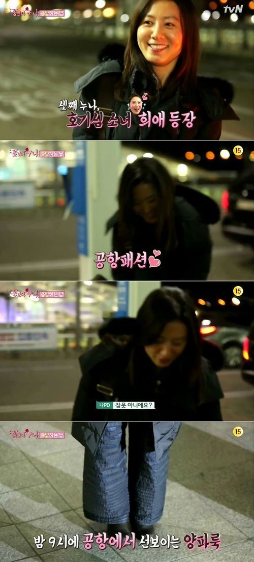 김희애는 29일 오후 방송된 tvN '꽃보다 누나'(연출 나영석) 첫회에서 여행을 위해 공항을 찾은 네 여배우들의 모습이 그려졌다.