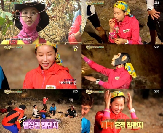 또 한은정은 족장 김병만이 잡아온 생선 구이를 먹으며 맛깔나는 먹방(먹는 방송)을 선보이기도 했다. 한은정은 "쫄깃하다. 쥐포 맛도 난다"면서 "지금까지 먹었던 것 중에 최고"라고 극찬하기까지했다. 고급 레스토랑에서 우아하게 나이프를 쥔 그 누구보다도 맛있게 이름모를 생선 구이를 먹는 한은정이 더 사랑스러웠다.