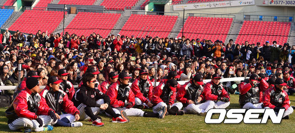 30일 오후 서울 잠실구장에서 열린 LG트윈스 러브페스티벌에서 LG 선수들이 팬들과 함께 페스티벌을 즐기고 있다.