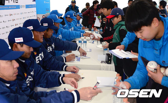 30일 오후 인천 문학구장에서 열리는 '2013 한일프로야구 레전드 슈퍼게임'경기에 앞서 진행된 팬 사인회에서 양팀 레전드들이 팬들에게 사인을 해주고 있다.
