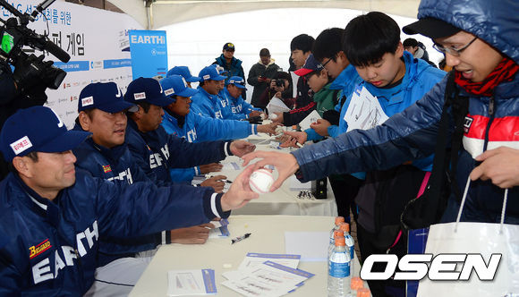 30일 오후 인천 문학구장에서 열리는 '2013 한일프로야구 레전드 슈퍼게임'경기에 앞서 진행된 팬 사인회에서 양팀 레전드들이 팬들에게 사인을 해주고 있다.