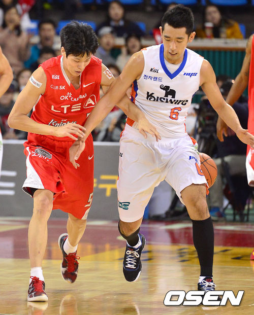 30일 오후 서울 잠실학생체육관에서 열린 'KB 국민카드 2012-2013 프로농구' 서울 SK와 인천 전자랜드의 경기, 1쿼터 SK 김선형이 전자랜드 차바위에게 공을 빼앗기고 있다.