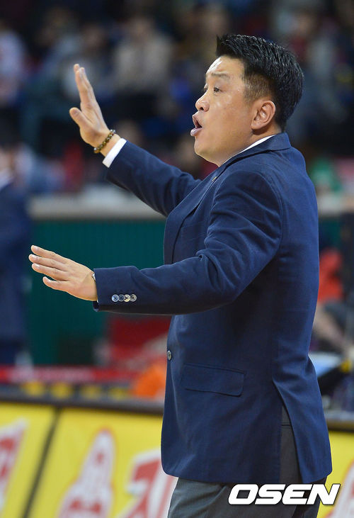 30일 오후 서울 잠실학생체육관에서 열린 'KB 국민카드 2012-2013 프로농구' 서울 SK와 인천 전자랜드의 경기,2쿼터 역전 허용한 전자랜드 유도훈 감독이 작전 지시를 하고 있다.