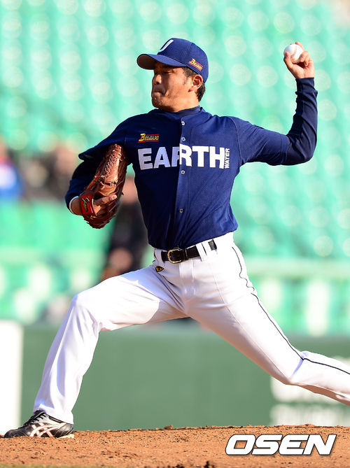 30일 오후 인천 문학구장에서 열린 '2013 한일프로야구 레전드 슈퍼게임'경기에서 2회말 일본 레전드 마에다가 역투하고 있다.