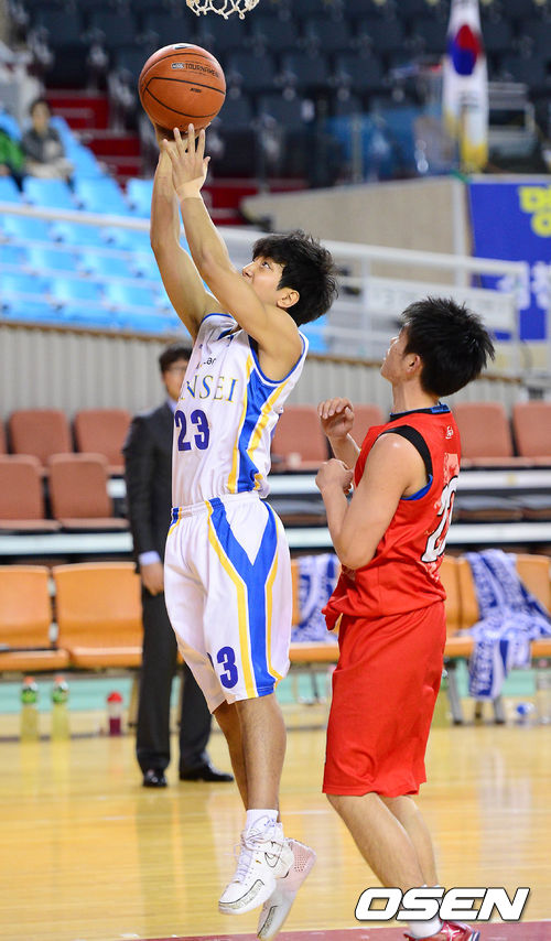2쿼터 연세대 허훈이 점프슛을 시도하고 있다.