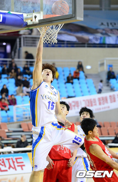 3쿼터 연세대 김준일이 레이업슛을 시도하고 있다.