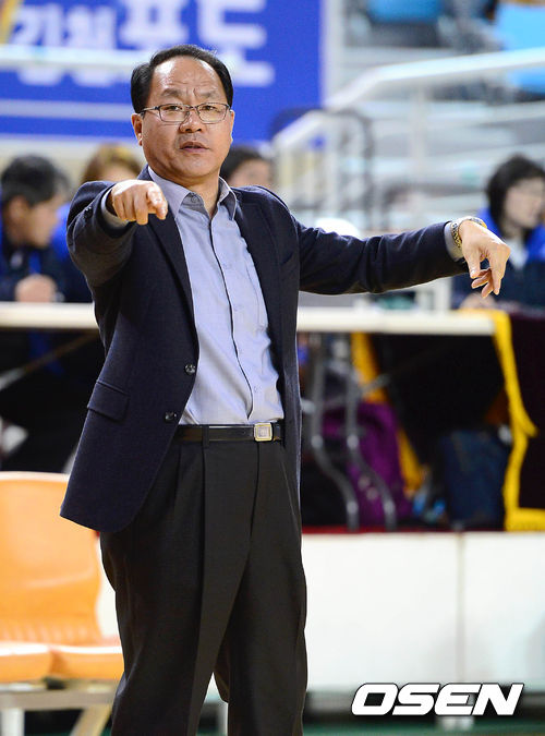 3쿼터 단국대 장봉군 감독이 선수들에게 작전을 지시하고 있다.