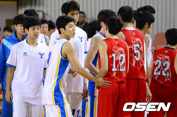 경기 종료 후 연세대와 단국대 선수들이 인사를 나누고 있다.