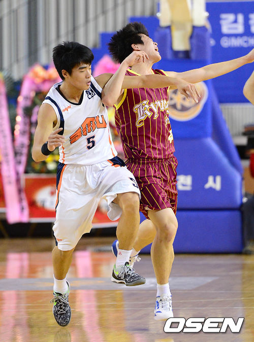 1쿼터 상명대 정성우와 경희대 최창진이 충돌하고 있다.