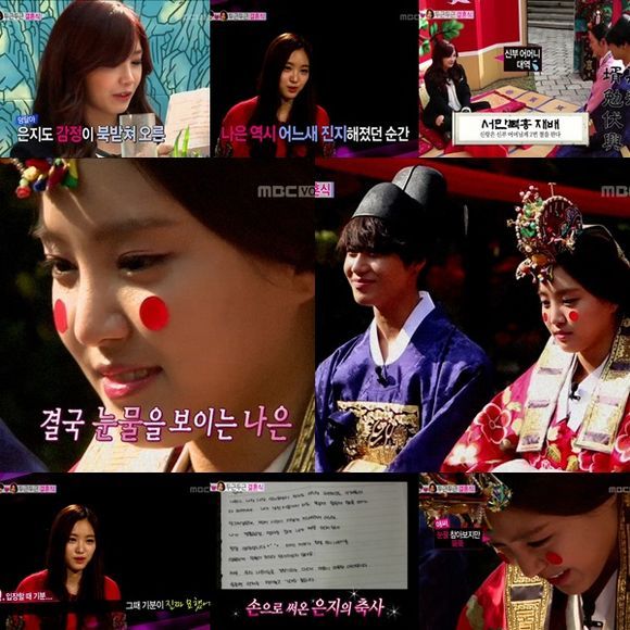 20살 손나은. 나이는 어려도 시집가는 새색시의 마음은 다 아는 여자였다. 가상이지만 샤이니 태민과 결혼생활을 한지 7개월여 만에 정식으로 결혼식을 올렸다. 전통혼례를 올리기로 한 손나은은 실제 새색시처럼 수줍은 모습이었다.