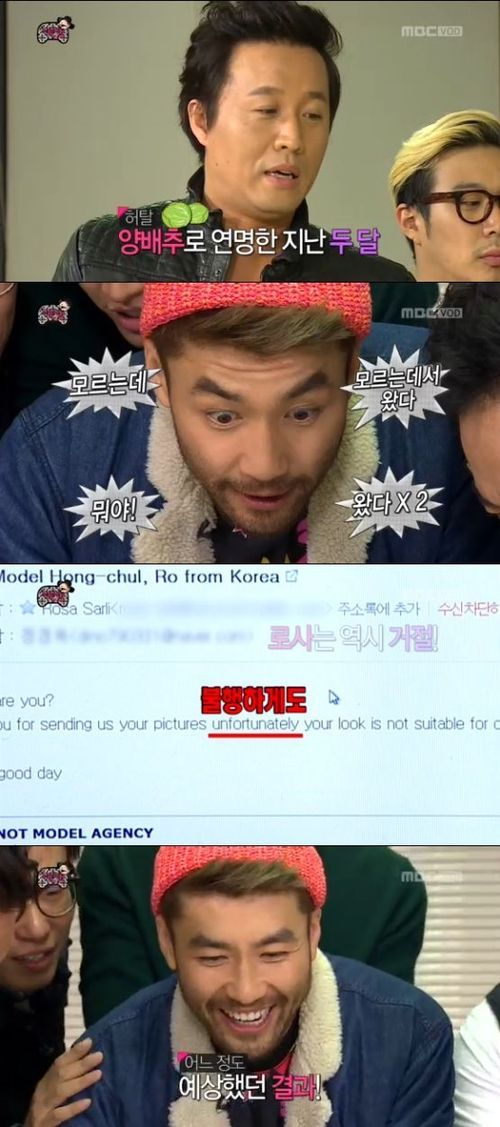 이날 '무한도전'에서는 2014년 초에 열리는 밀라노 패션위크 참여를 위해 프로필 촬영을 한 후 현지 에이전시에 지원했던 멤버들이 전원 불합격 통보를 받는 모습이 그려졌다. 정준하는 무려 18kg 가량을 뺐고, 노홍철은 완벽한 복근을 과시하는 등 멤버들 모두 각고의 노력을 더했지만, 끝내 꿈에 그리던 밀라노 행이 무산되는 듯해 보여 아쉬움을 자아냈다.
