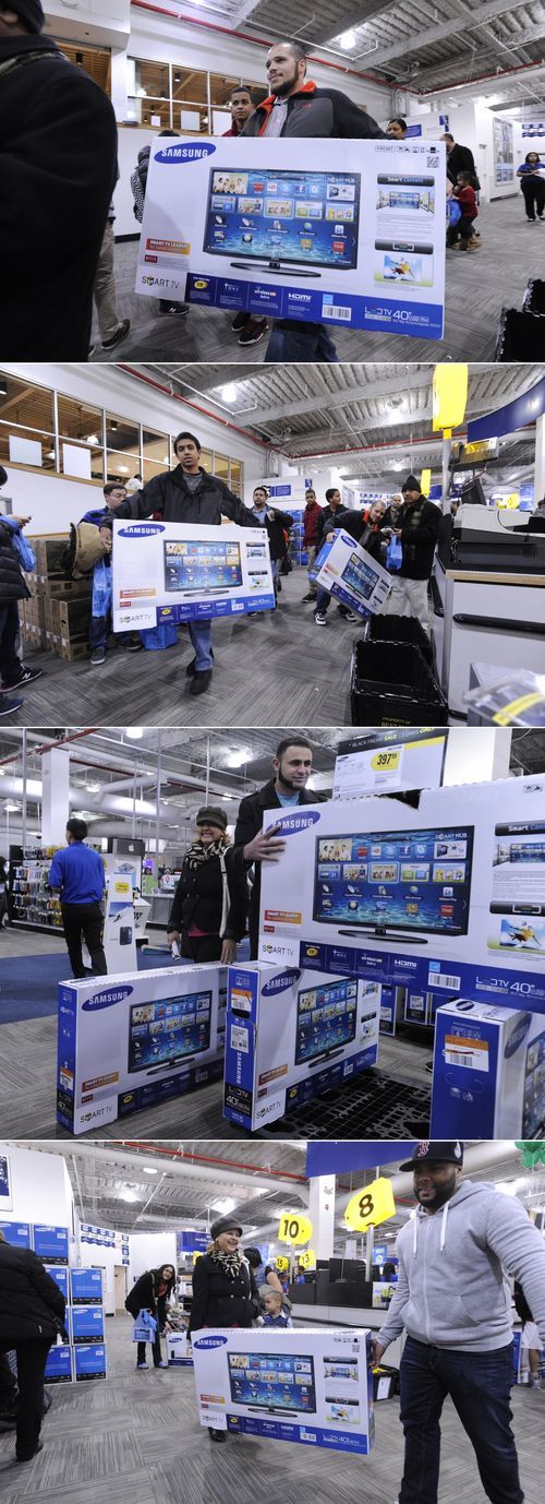 삼성전자는 미국 뉴욕의 ‘웨스트 나이액’에 있는 베스트바이 매장에서 촬영 된 사진을 공개 했는데 미국 소비자들이 대형 삼성 스마트 TV를 사 들고 매장을 나서는 모습들이 담겨 있다.