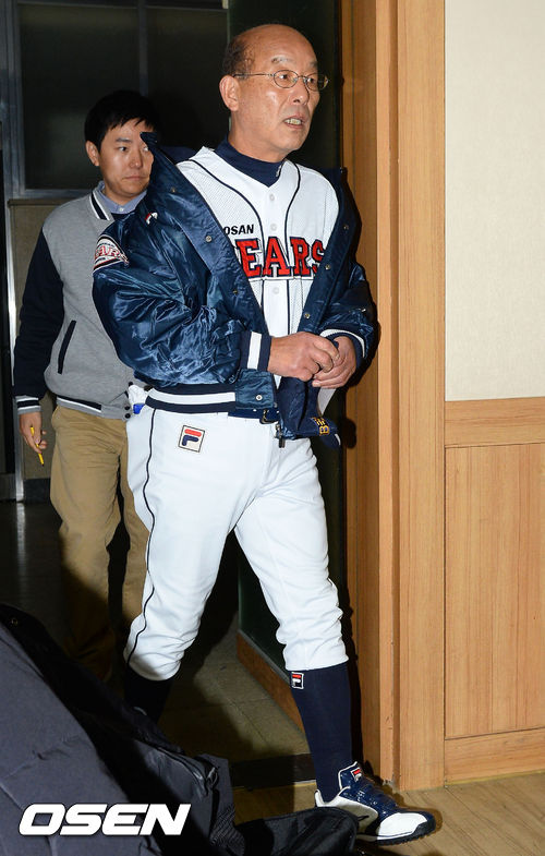 1일 오전 서울 잠실구장에서 열린 '송일수 신임감독 인터뷰'에서 송일수 감독이 기자회견 장소로 입장하고 있다.