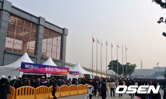 'WCG 2013 그랜드 파이널'의 마지막날 경기 표를 사려는 많은 현지 관람객들로 아침부터 중국 쿤산 국제컨벤션센터가 북새통을 이뤘다.