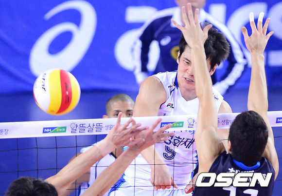 1일 오후 천안 유관순체육관에서 열린 '2013-2014 NH농협 V리그' 남자부 현대캐피탈과 삼성화재의 경기 2세트 이선규가 공격을 시도하고 있다.