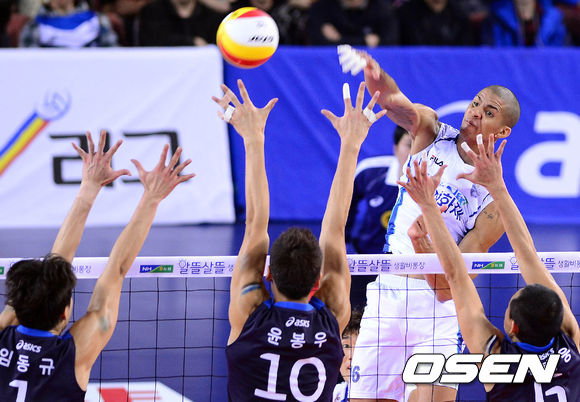 1일 오후 천안 유관순체육관에서 열린 '2013-2014 NH농협 V리그' 남자부 현대캐피탈과 삼성화재의 경기 2세트 레오가 공격을 시도하고 있다.