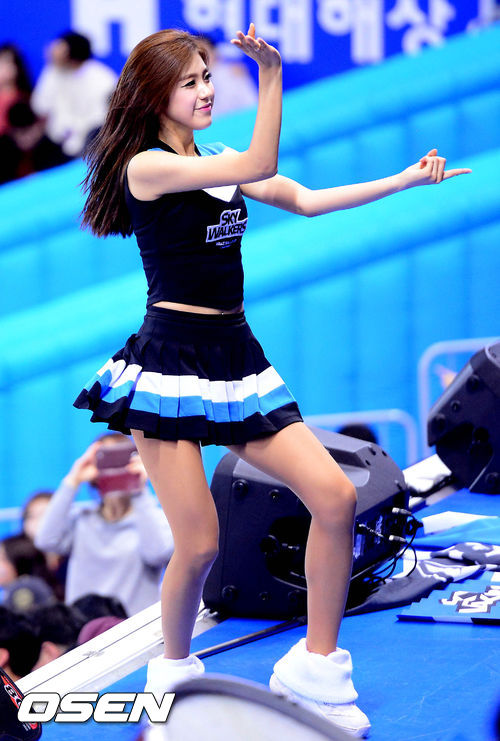 1일 오후 천안 유관순체육관에서 열린 '2013-2014 NH농협 V리그' 남자부 현대캐피탈과 삼성화재의 경기, 치어리더 김연정이 공연을 펼치고 있다.