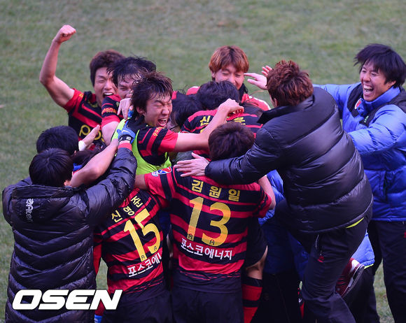 포항은 1일 오후 울산문수축구경기장서 열린 현대오일뱅크 K리그 클래식 40라운드 시즌 최종전서 종료 직전 신영준이 극적인 골을 터트리며 울산을 1-0으로 물리쳤다. 이로써 포항은 승점 74점을 기록하며 2위 울산(승점 73)을 극적으로 따돌리고 우승컵을 들어올리게 됐다.