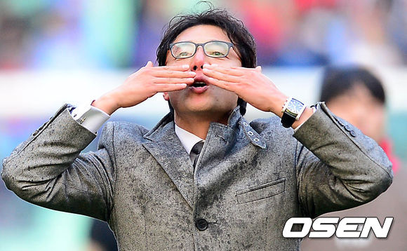 우승을 차지한 포항 황선홍 감독이 세레모니를 하고 있다. /sunday@osen.co.kr