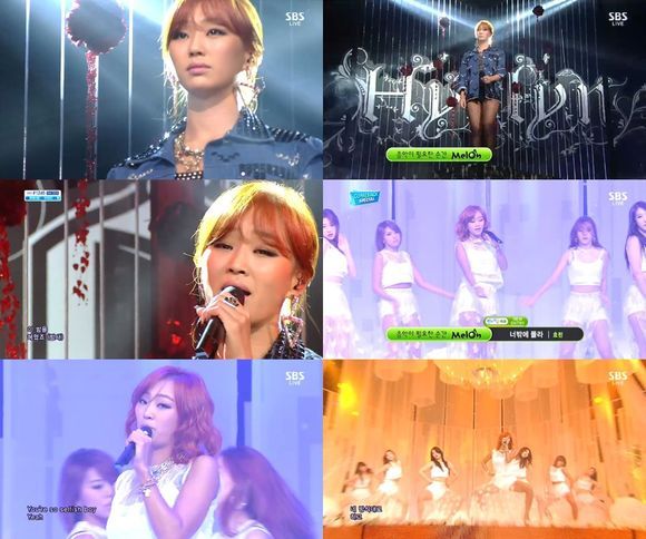 이날 컴백무대의 시작은 '론리'였다. 감성적인 멜로디를 효린 특유의 애절한 보이스로 더욱 분위기 있게 만들어 듣는 이들의 이목을 집중시켰다.