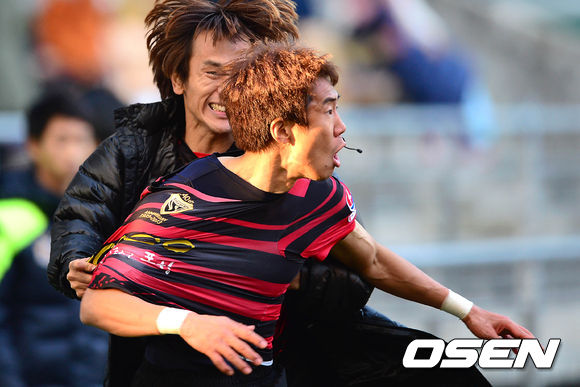 후반 결승골에 성공한 포항 김원일이 환호하고 있다. /sunday@osen.co.kr
