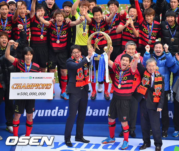 포항은 지난 2007년 이후 6년 만에 K리그 정상의 기쁨을 누렸다. 1986년, 1988년, 1992년, 2007년에 이어 통산 5번째 우승의 금자탑을 쌓았다. 더블의 꿈도 이뤘다. 지난달 전북 현대를 물리치고 FA컵 2연패를 달성한 데 이어 K리그 왕좌를 차지하며 최고의 시즌을 마무리했다.