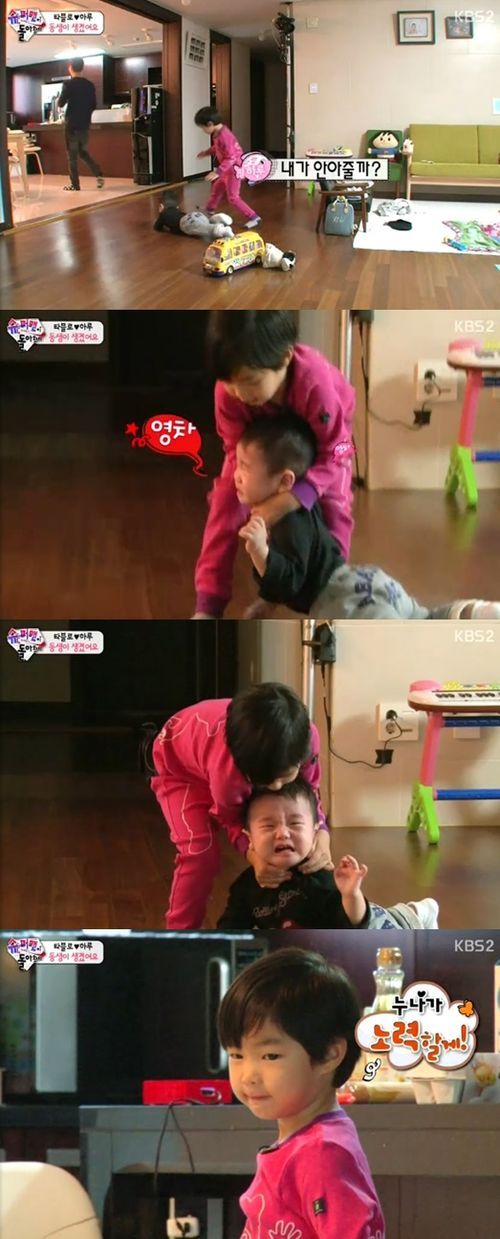 1일 방송된 KBS 2TV 예능프로그램 '해피선데이-슈퍼맨이 돌아왔다'(이하 '슈퍼맨') 5화 '서툴러도 괜찮아'에서는 타블로와 하루, 추성훈과 사랑, 장현성과 준우, 준서, 이휘재와 서언, 서준의 이야기가 그려졌다.