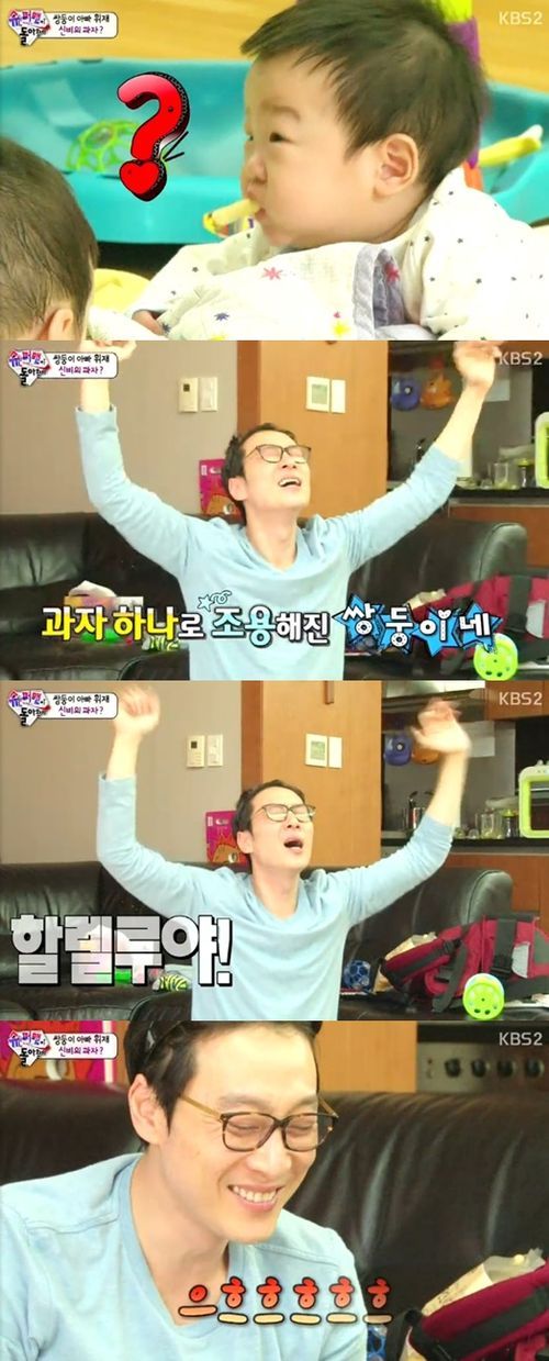 초보아빠 이휘재가 과자로 쌍둥이를 평정했다.