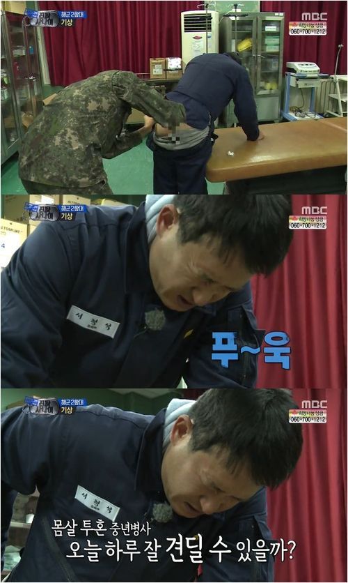 서경석은 1일 방송된 MBC 예능프로그램 ‘일밤-진짜 사나이’에서 아침부터 몸살 기운에 시달렸다.