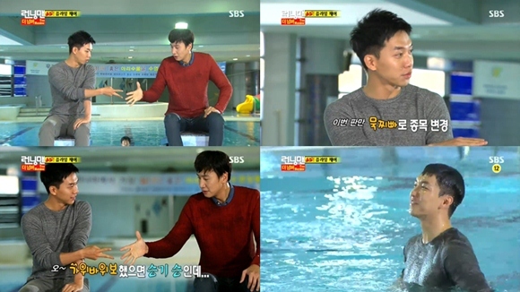 '런닝맨' 멤버들과 게스트들은 첫 번째 미션으로 '올킬 플라잉 체어'를 진행하기 위해 수영장으로 이동했다. 가장 먼저 김종국이 탈락한 뒤 이승기와 이광수가 대결에 임했다.