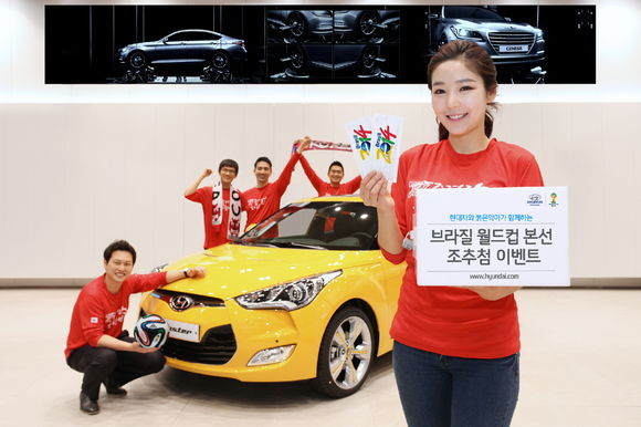 현대차가 대한민국 국가대표팀의 '2014 브라질 월드컵' 선전을 응원하면 선물을 증정하는 이벤트를 펼친다.