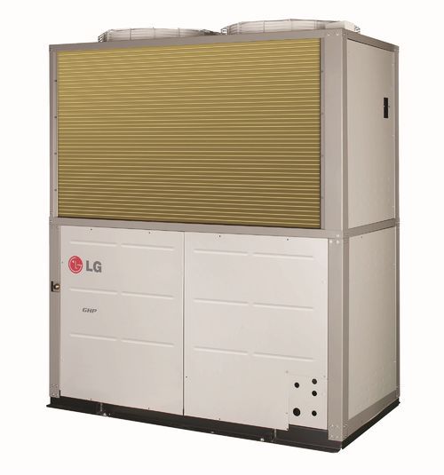 가스히트펌프는 전기 대신 가스를 열원으로 사용하는 냉난방기기로, 여름과 겨울철 전력피크 시 전력 수요를 줄여주는 제품이다. 시스템에어컨과 마찬가지로 한 대의 실외기에 여러 대의 실내기를 배관으로 연결해 사용한다.