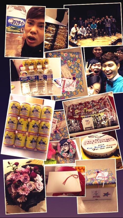공개된 사진 속에는 팬들이 김범수를 위해 마련한 각종 음료수와 선물들이 담겨있다. 또 다른 사진 속에는 김범수가 콘서트 스태프들과 함께 즐거운 미소를 짓고 있다.