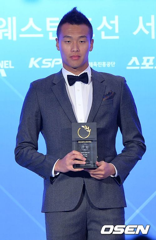 프로축구 올해의 선수상을 수상한 울산 김신욱이 기념촬영을 하고 있다.