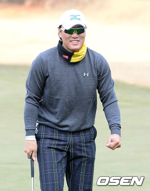 삼성 이승엽이 퍼팅에 성공하고 미소짓고 있다.