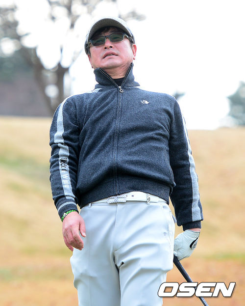 삼성 류중일 감독이 티샷을 날리고 아쉬워하고 있다.