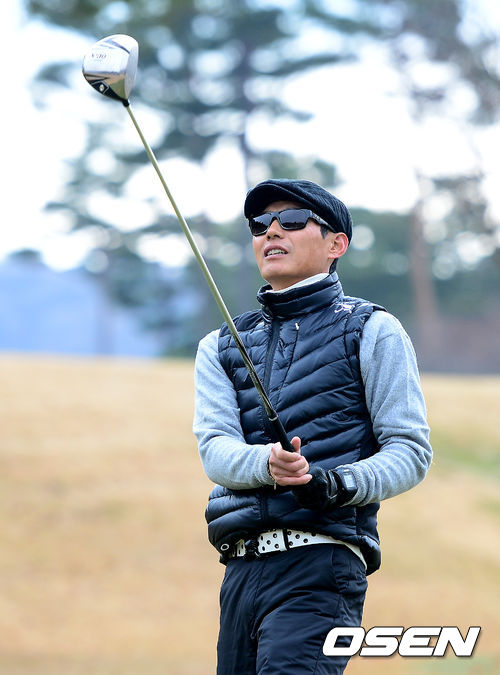 넥센 염경엽 감독이 티샷을 날리고 있다.