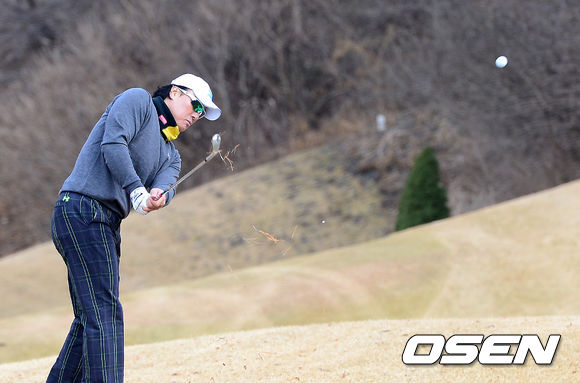 삼성 이승엽이 아이언 샷을 날리고 있다.