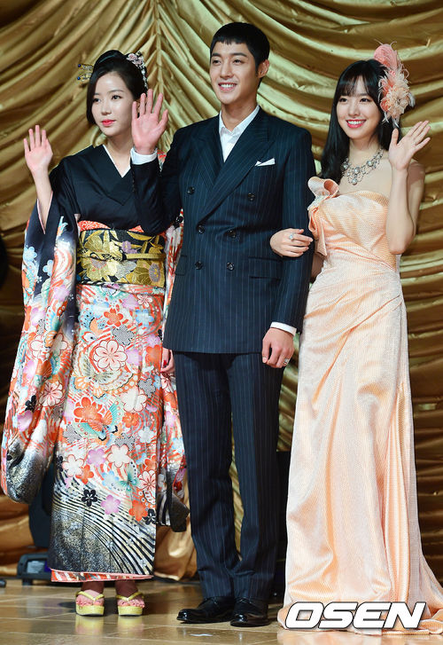 2일 오후 서울 강남구 역삼동 라움 마제스틱볼룸에서 열린 KBS 2TV 새 수목드라마 '감격시대:투신의 탄생'의 쇼케이스에서 임수향 김현중 진세연이 포토타임을 갖고 있다.