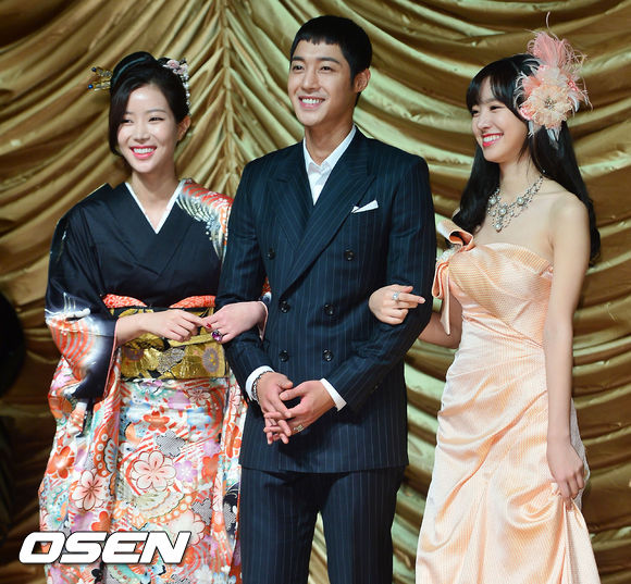 2일 오후 서울 강남구 역삼동 라움 마제스틱볼룸에서 열린 KBS 2TV 새 수목드라마 '감격시대:투신의 탄생'의 쇼케이스에서 임수향 김현중 진세연이 포토타임을 갖고 있다.