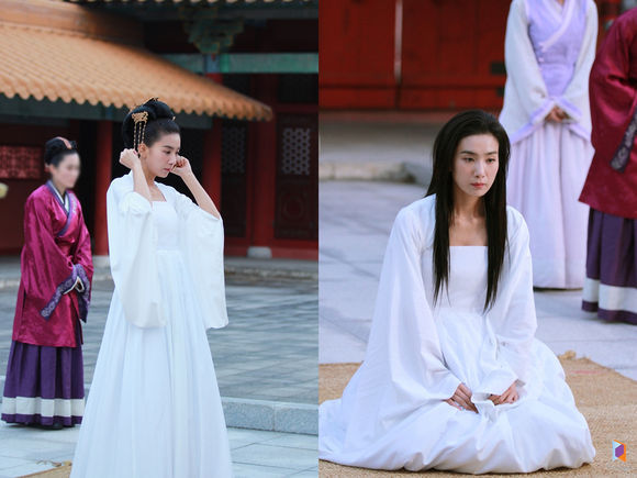 지금까지 방송에서 보인 화려하고 위풍당당했던 모습에서 화려한 의관과 관복도 모두 벗은 채 산발 속 화장기 없는 창백한 얼굴과 결연한 표정으로 꿇어 앉아 있는 황태후의 모습은 시청자들로 하여금 궁금증을 자아내고 있다.
